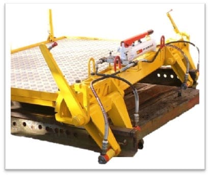 The Gauging Beam has two internal cylinders to increase the rail gauge and two external cylinders to decrease the rail gauge. Each set of cylinders can be locked in place to hold gauge while the track is re-clipped/fastened. The gauge can be measured with a light weight track gauge. Also available with a high-pressure power pack.