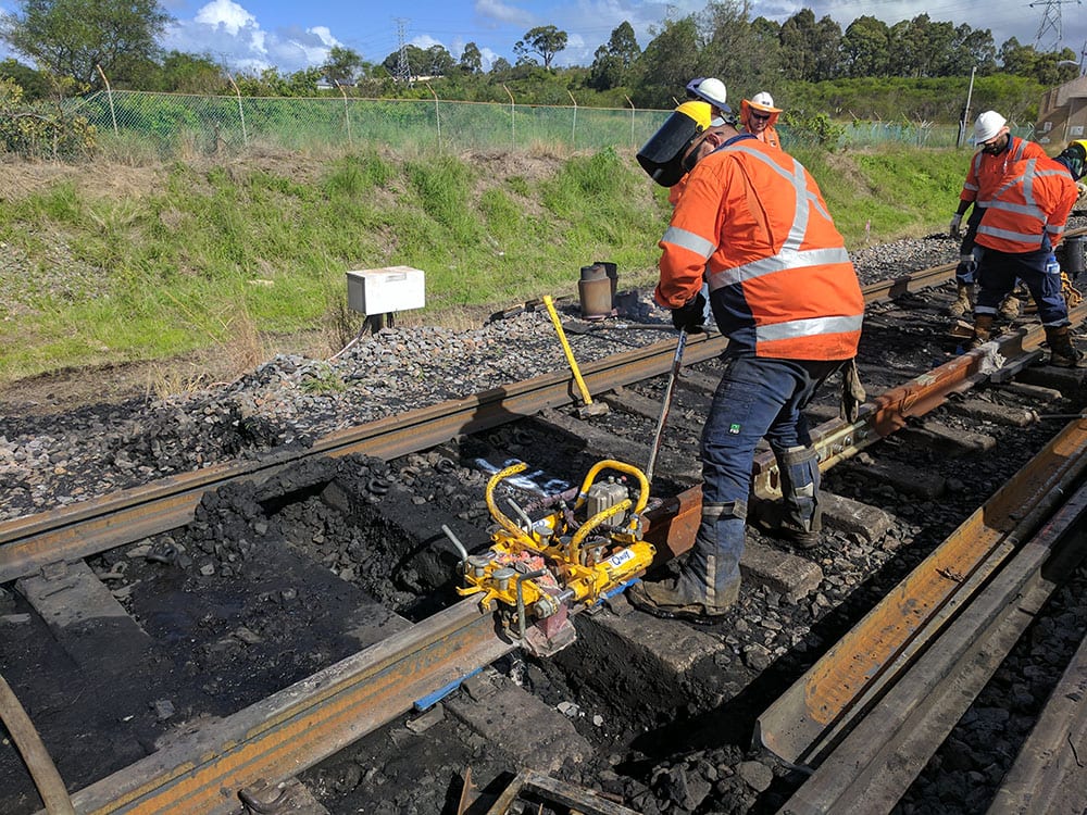 Melvelle Equipment manufactures rail weld shears in a variety of models to suit varying applications such as standard rail, tram rail and crane rail. Each can be manually powered by a hand pump mounted on the shears, or by a petrol or diesel power pack. The shearing force is centred to equalise the lifting and driving in forces on the blades which ensures an inherently stable and flat cut surface on the rail head.